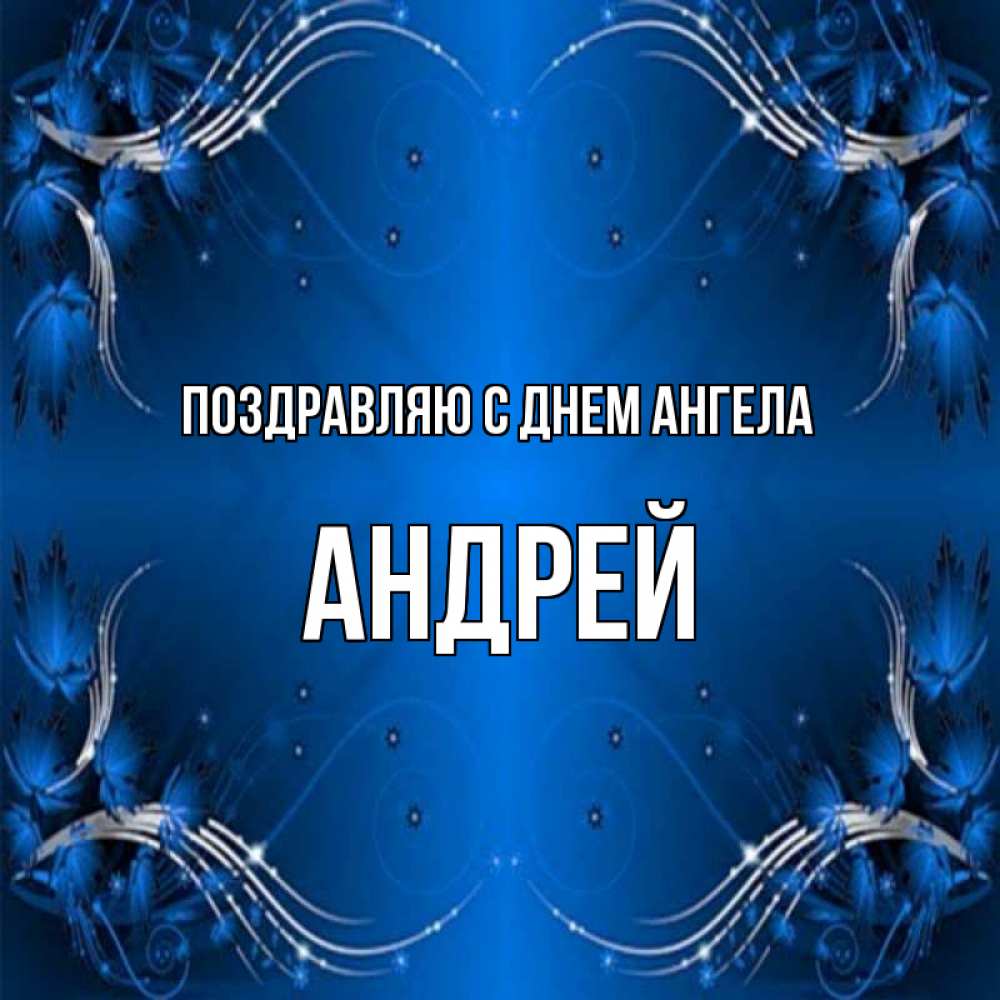 Открытка Поздравляю с днем Ангела Андрей. Рамочка с узорами синебелая. красивая рамочка с узорами