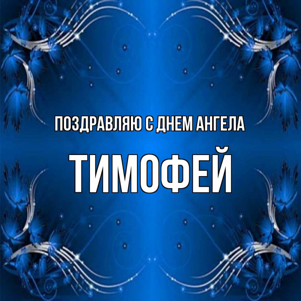 Открытка Поздравляю с днем Ангела Тимофей. Рамочка с узорами синебелая. красивая рамочка с узорами