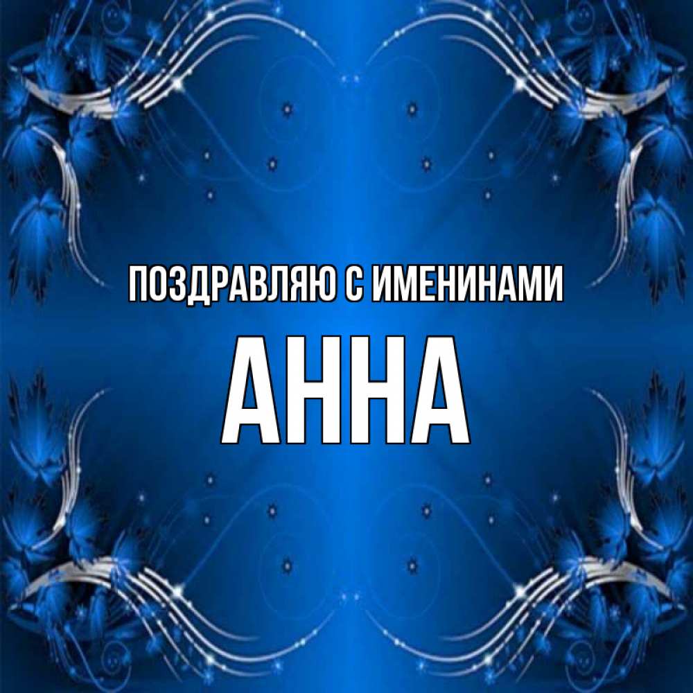 Открытка Поздравляю с именинами Анна. Рамочка с узорами синебелая. красивая рамочка с узорами