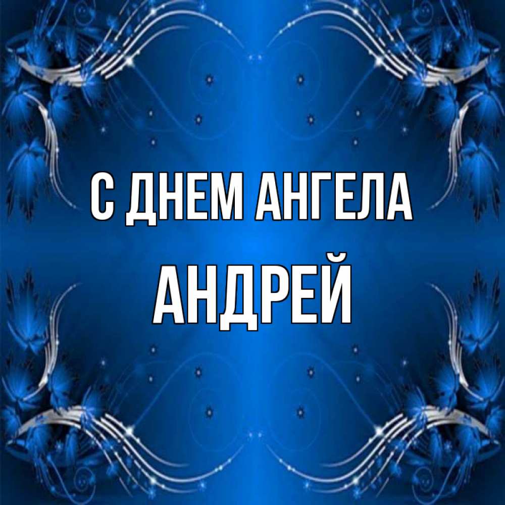 Открытка С днем Ангела Андрей. Рамочка с узорами синебелая. красивая рамочка с узорами