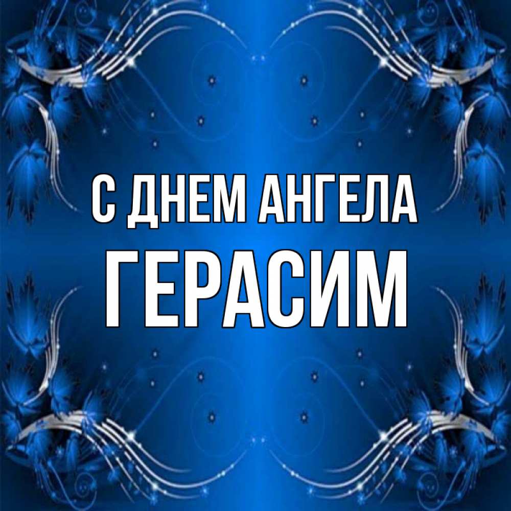 Открытка С днем Ангела Герасим. Рамочка с узорами синебелая. красивая рамочка с узорами
