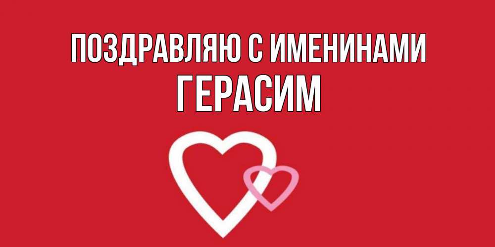 Открытка Поздравляю с именинами Герасим. белое сердце на красном фоне. сердце