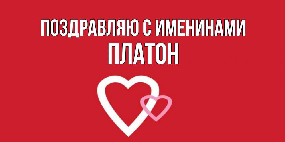 Открытка Поздравляю с именинами Платон. белое сердце на красном фоне. сердце