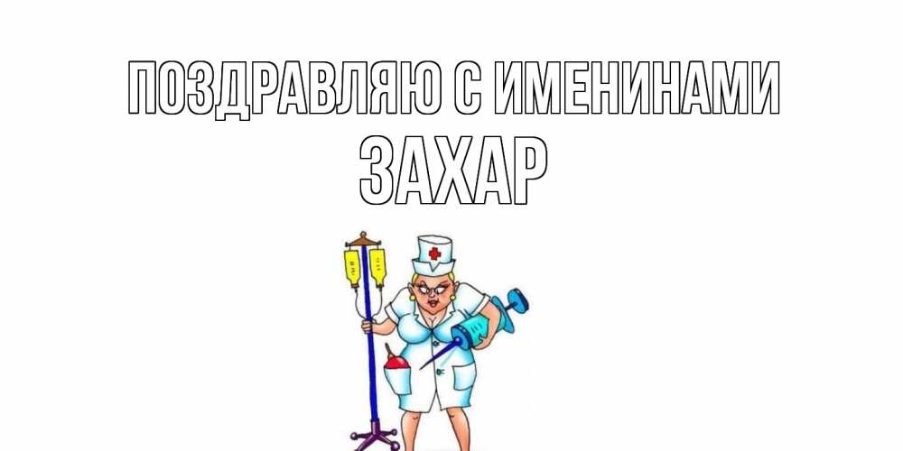 Открытка Поздравляю с именинами Захар. медсестра со шприцем. медсестра
