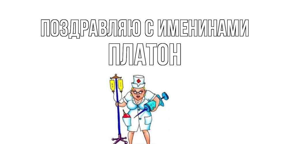 Открытка Поздравляю с именинами Платон. медсестра со шприцем. медсестра