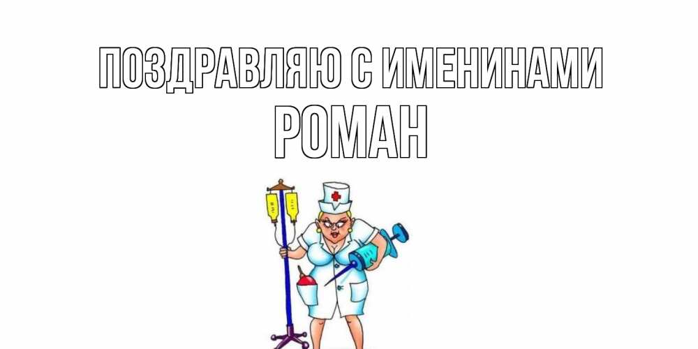 Открытка Поздравляю с именинами Роман. медсестра со шприцем. медсестра