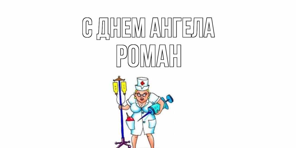 Открытка С днем Ангела Роман. медсестра со шприцем. медсестра