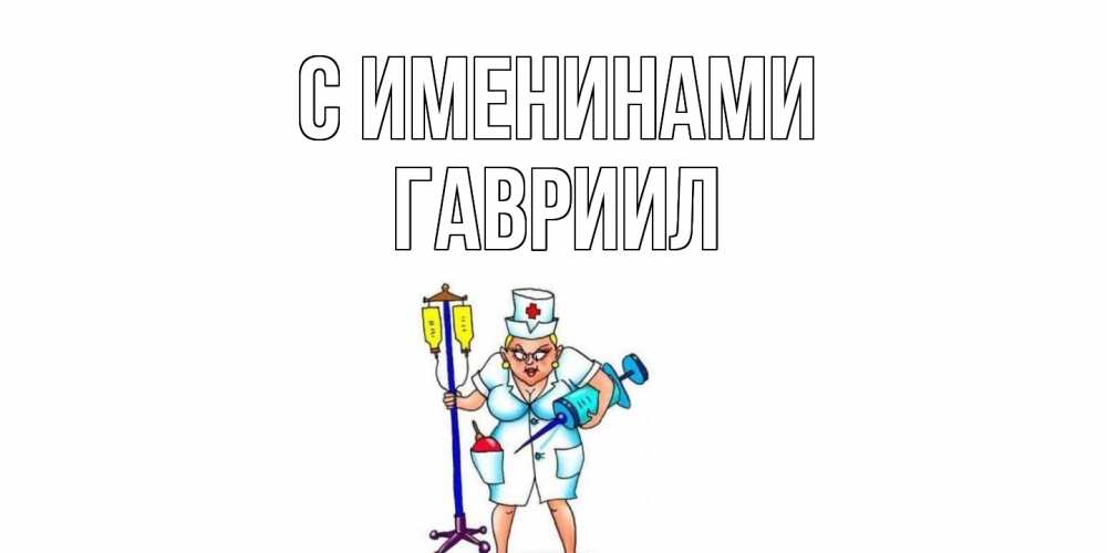 Открытка С именинами Гавриил. медсестра со шприцем. медсестра