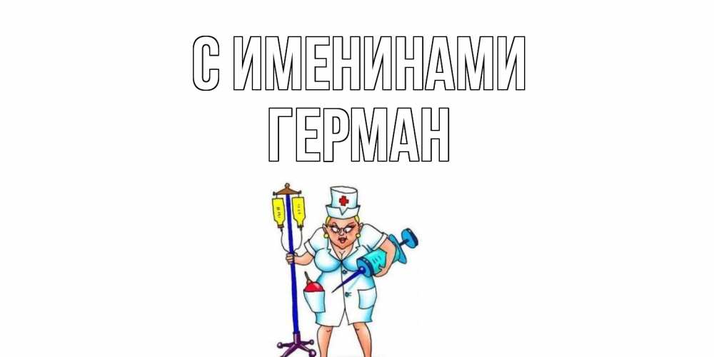 Открытка С именинами Герман. медсестра со шприцем. медсестра