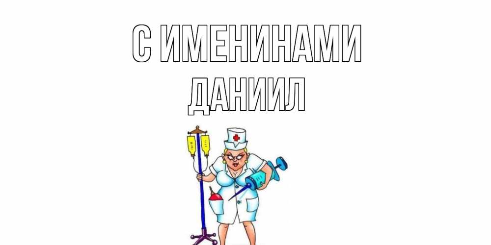 Открытка С именинами Даниил. медсестра со шприцем. медсестра