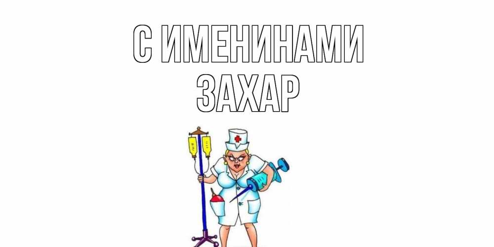Открытка С именинами Захар. медсестра со шприцем. медсестра