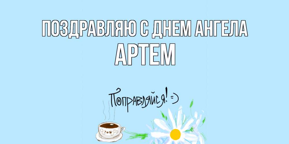 Открытка Поздравляю с днем Ангела Артем. ромашки и чай. чай