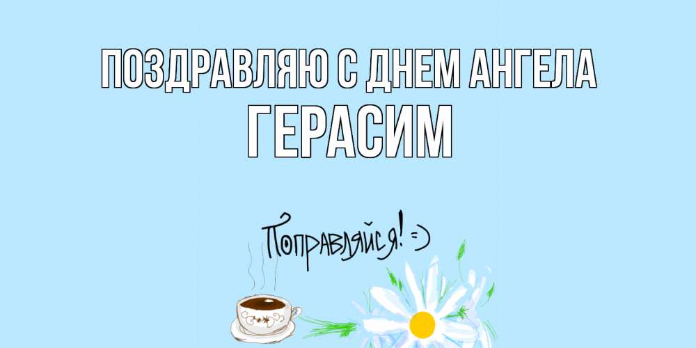 Открытка Поздравляю с днем Ангела Герасим. ромашки и чай. чай