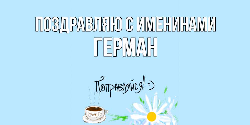 Открытка Поздравляю с именинами Герман. ромашки и чай. чай