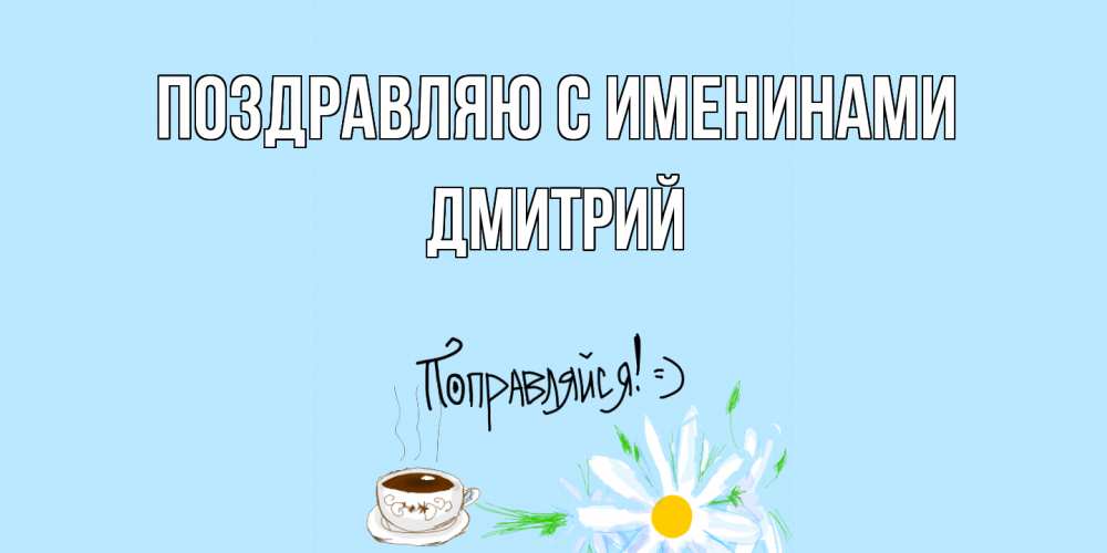 Открытка Поздравляю с именинами Дмитрий. ромашки и чай. чай