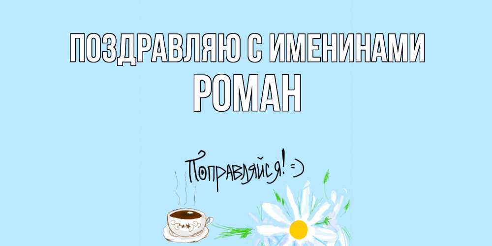 Открытка Поздравляю с именинами Роман. ромашки и чай. чай