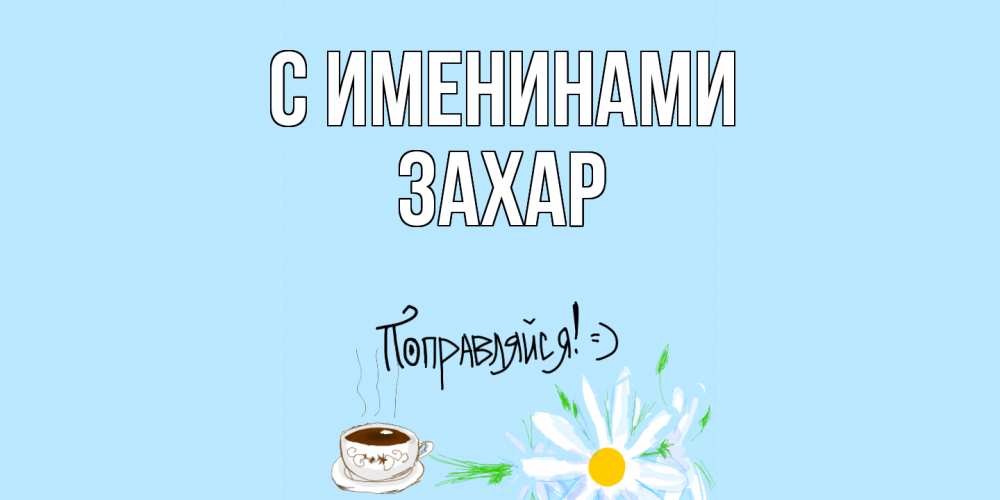 Открытка С именинами Захар. ромашки и чай. чай