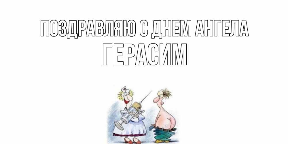 Открытка Поздравляю с днем Ангела Герасим. большой шприц. шприц