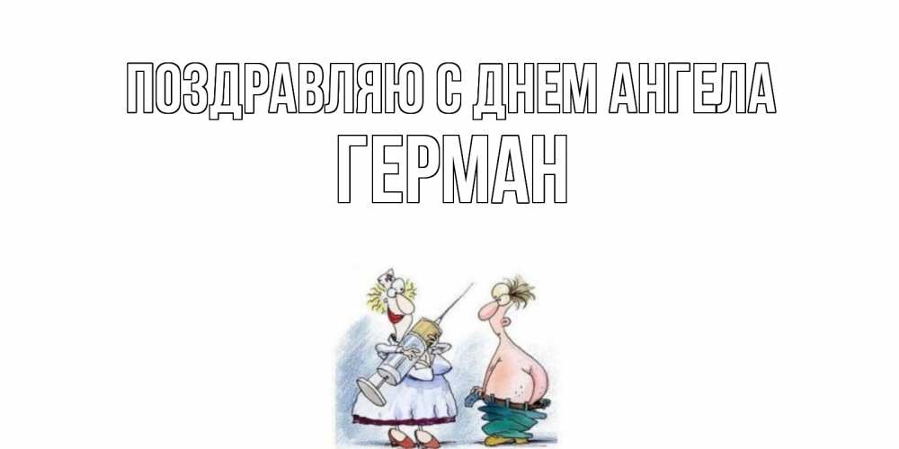 Открытка Поздравляю с днем Ангела Герман. большой шприц. шприц