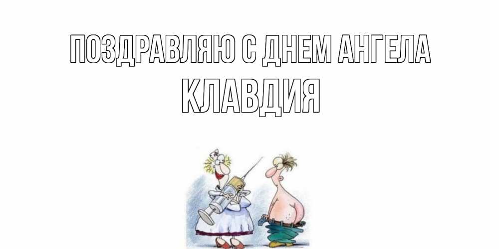 Открытка Поздравляю с днем Ангела Клавдия. большой шприц. шприц