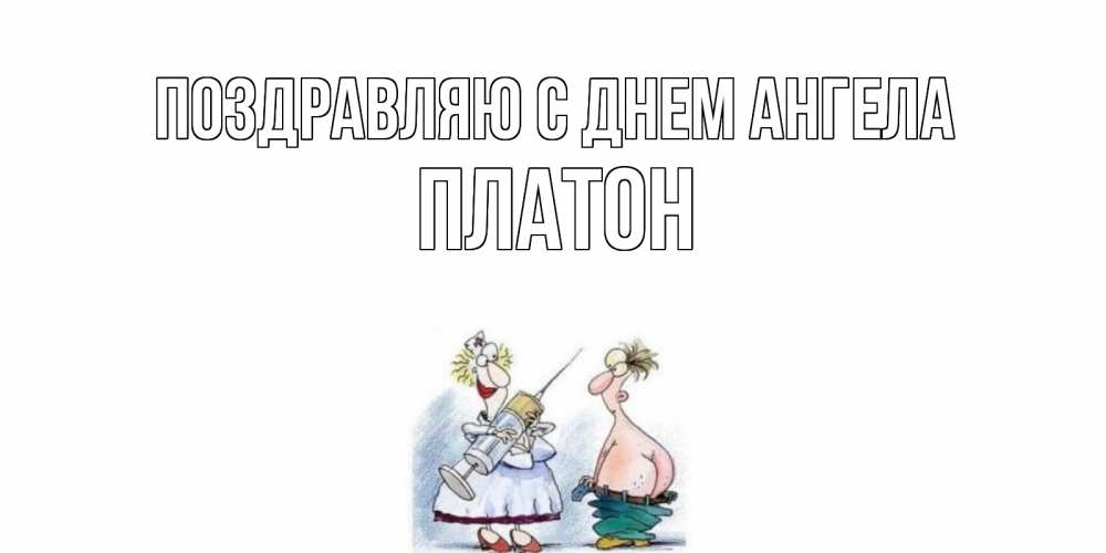 Открытка Поздравляю с днем Ангела Платон. большой шприц. шприц
