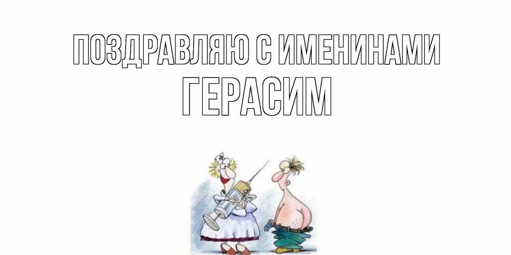 Открытка Поздравляю с именинами Герасим. большой шприц. шприц