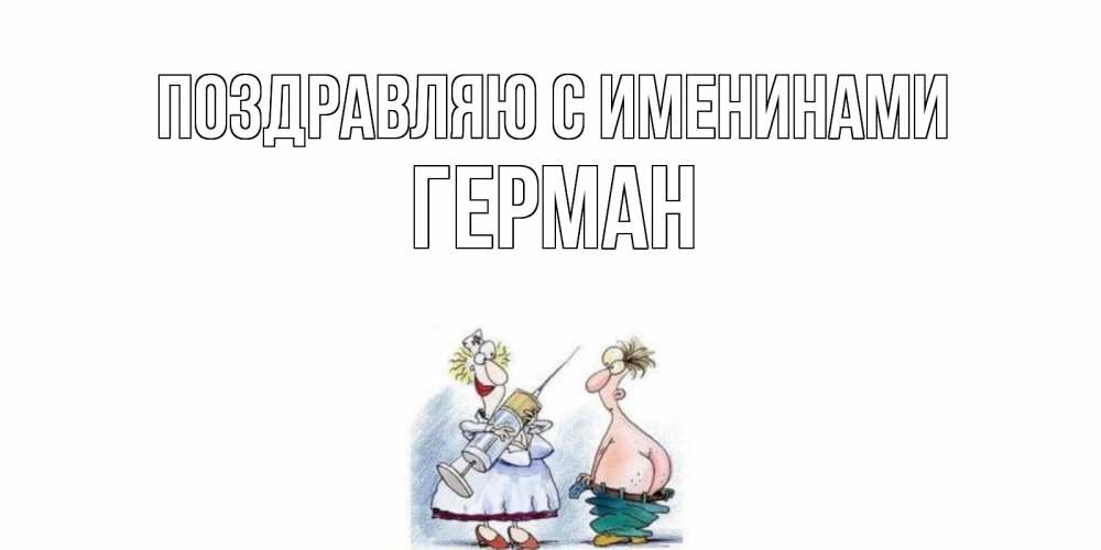 Открытка Поздравляю с именинами Герман. большой шприц. шприц