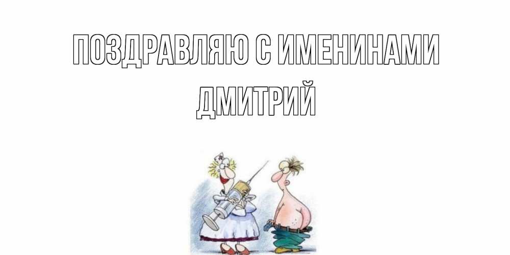 Открытка Поздравляю с именинами Дмитрий. большой шприц. шприц