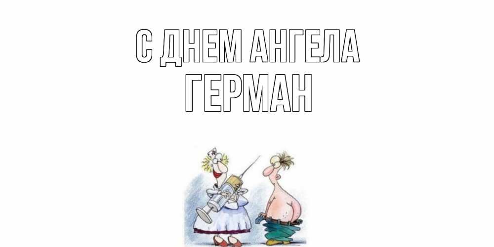 Открытка С днем Ангела Герман. большой шприц. шприц