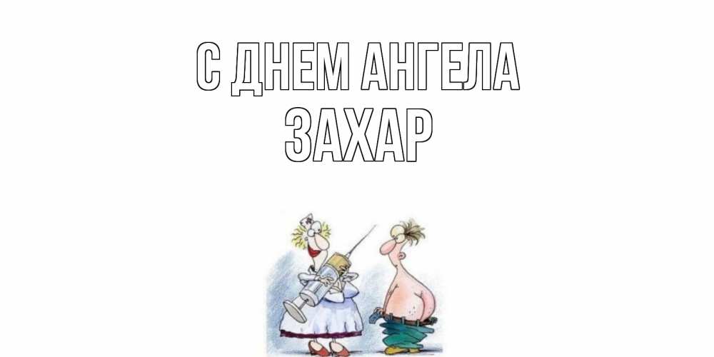 Открытка С днем Ангела Захар. большой шприц. шприц