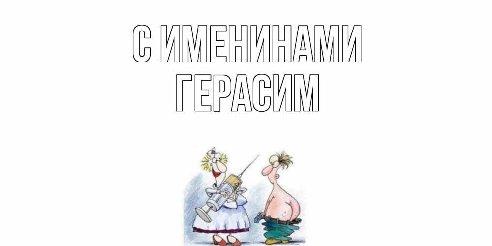 Открытка С именинами Герасим. большой шприц. шприц