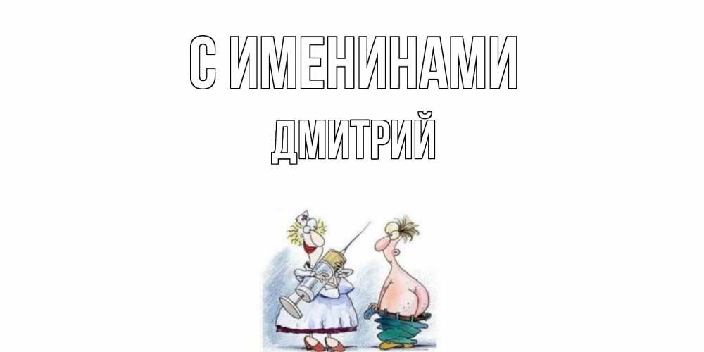 Открытка С именинами Дмитрий. большой шприц. шприц