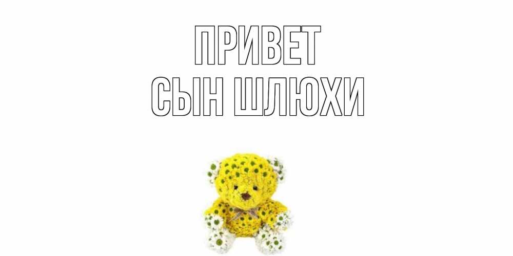 Открытка Привет Сын шлюхи. мишка из цветов. мишка