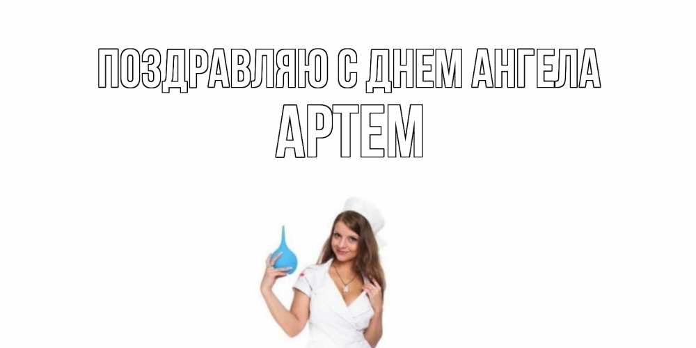 Открытка Поздравляю с днем Ангела Артем. медсестра с клизмой. клизма