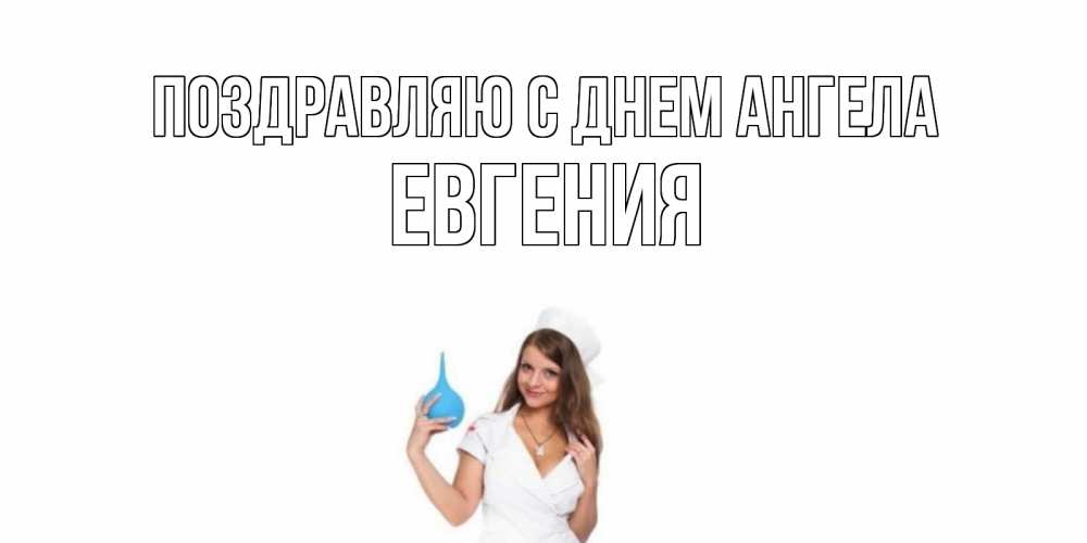 Открытка Поздравляю с днем Ангела Евгения. медсестра с клизмой. клизма