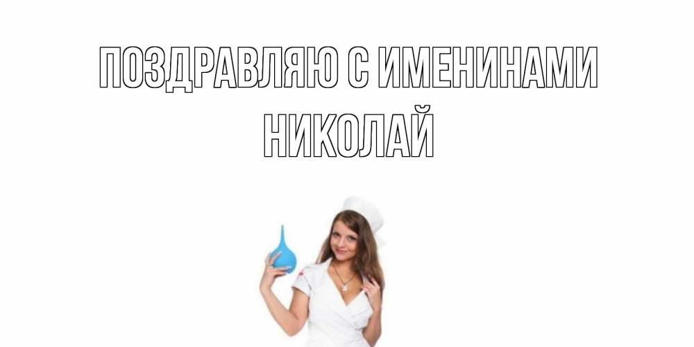 Открытка Поздравляю с именинами Николай. медсестра с клизмой. клизма
