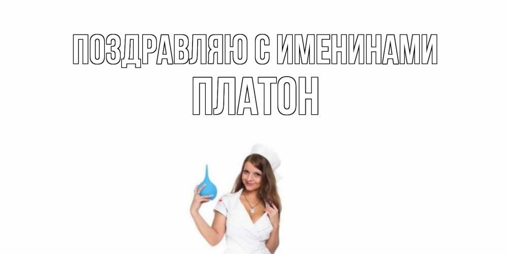 Открытка Поздравляю с именинами Платон. медсестра с клизмой. клизма