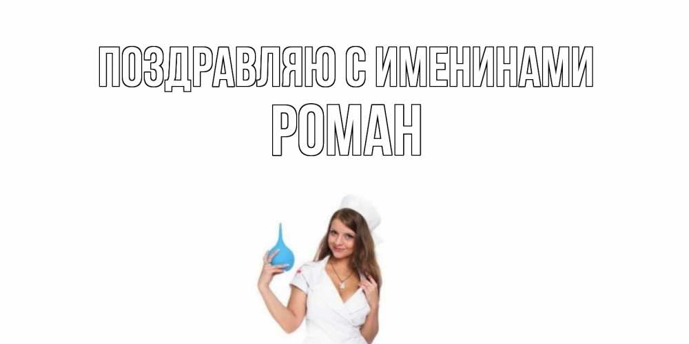 Открытка Поздравляю с именинами Роман. медсестра с клизмой. клизма