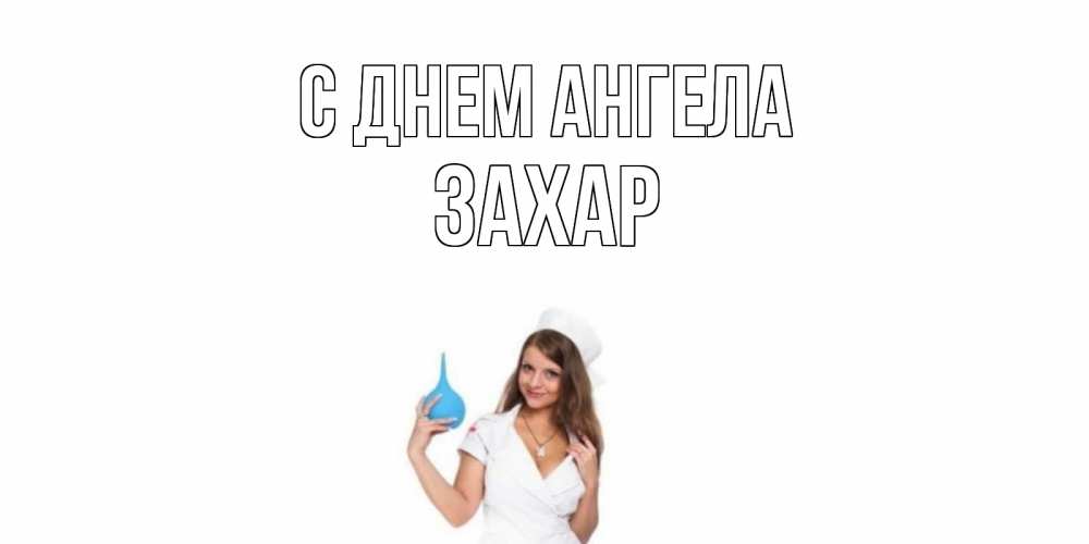 Открытка С днем Ангела Захар. медсестра с клизмой. клизма