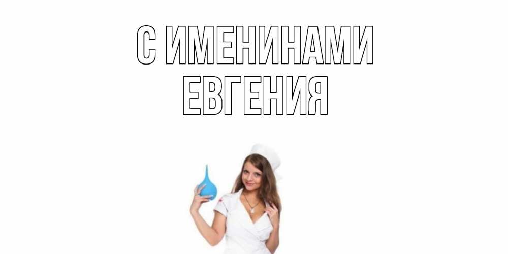 Открытка С именинами Евгения. медсестра с клизмой. клизма