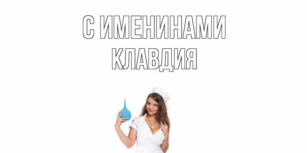 Открытка С именинами Клавдия. медсестра с клизмой. клизма