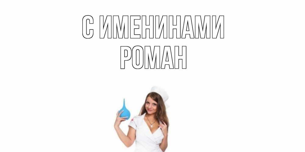 Открытка С именинами Роман. медсестра с клизмой. клизма