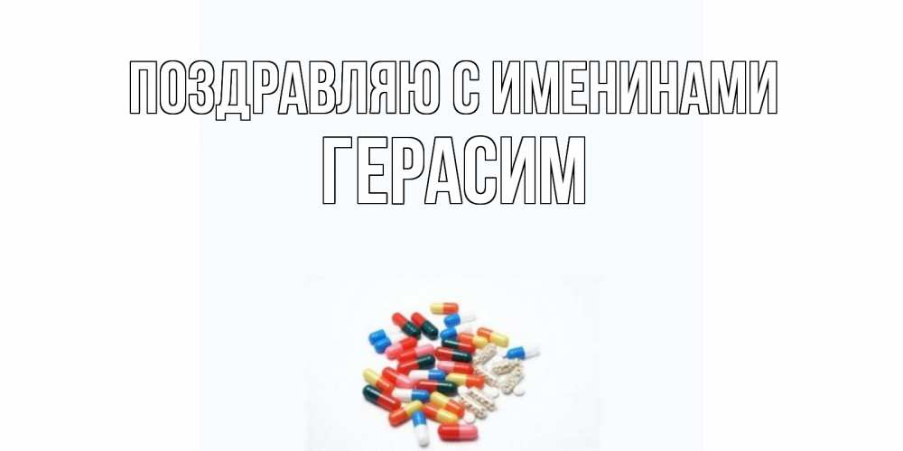 Открытка Поздравляю с именинами Герасим. таблетки. таблетки