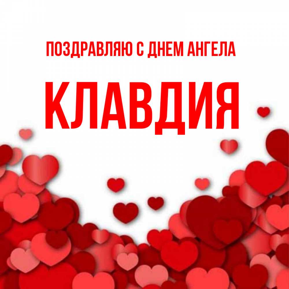 Открытка Поздравляю с днем Ангела Клавдия. Я тебя люблю картинка с сердечками и красной подписью. много красных сердечек о любви