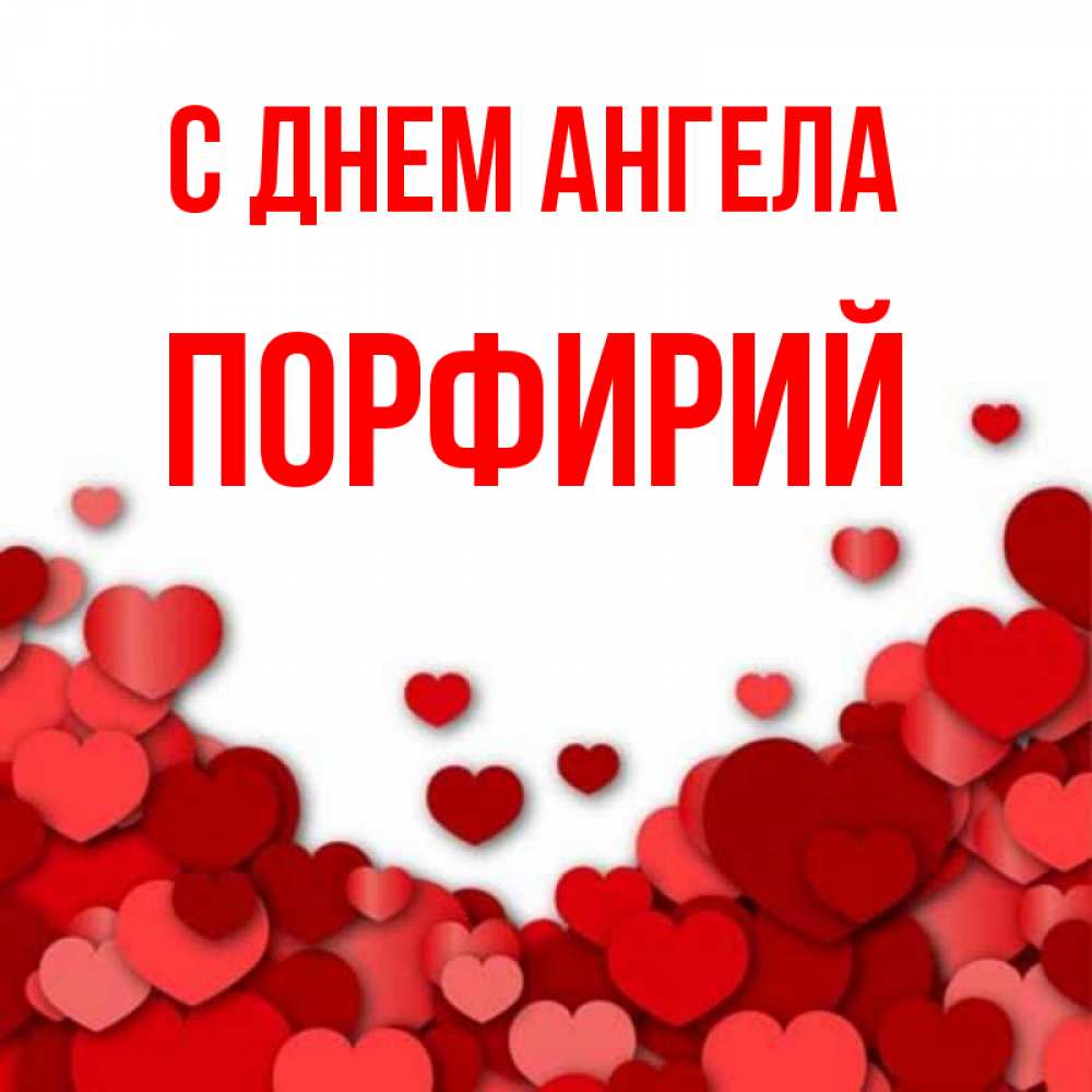 Открытка С днем Ангела Порфирий. Я тебя люблю картинка с сердечками и красной подписью. много красных сердечек о любви