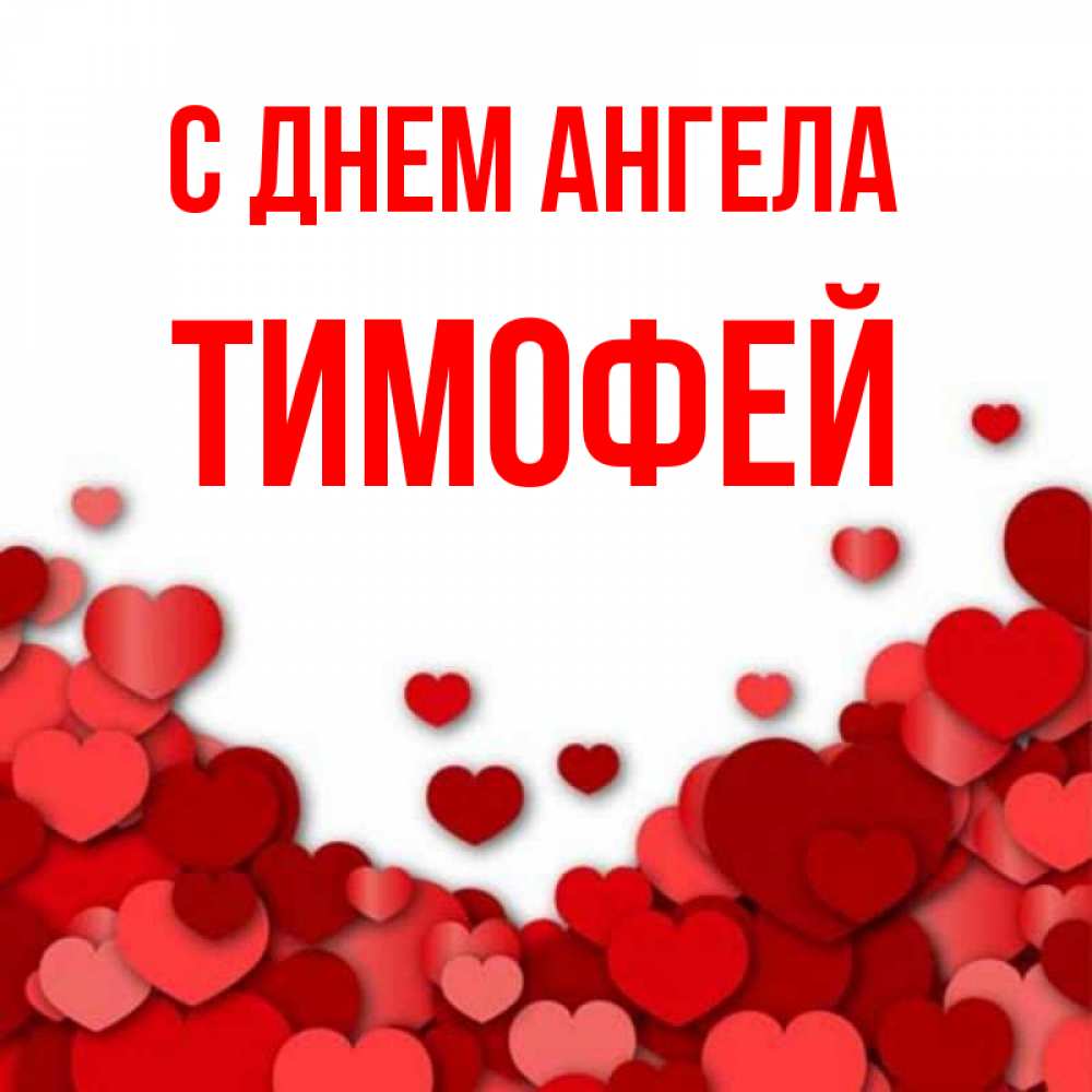 Открытка С днем Ангела Тимофей. Я тебя люблю картинка с сердечками и красной подписью. много красных сердечек о любви